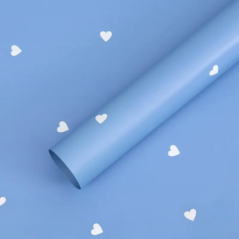 Niebieska folia florystyczna w delikatne serduszka to wyjątkowe połączenie romantycznego wzoru z chłodną, spokojną kolorystyką. Odcień niebieskiego wprowadza do aranżacji poczucie lekkości, harmonii i świeżości, a drobne serca nadają całości miękki, emocjonalny akcent bez nadmiernej dekoracyjności.