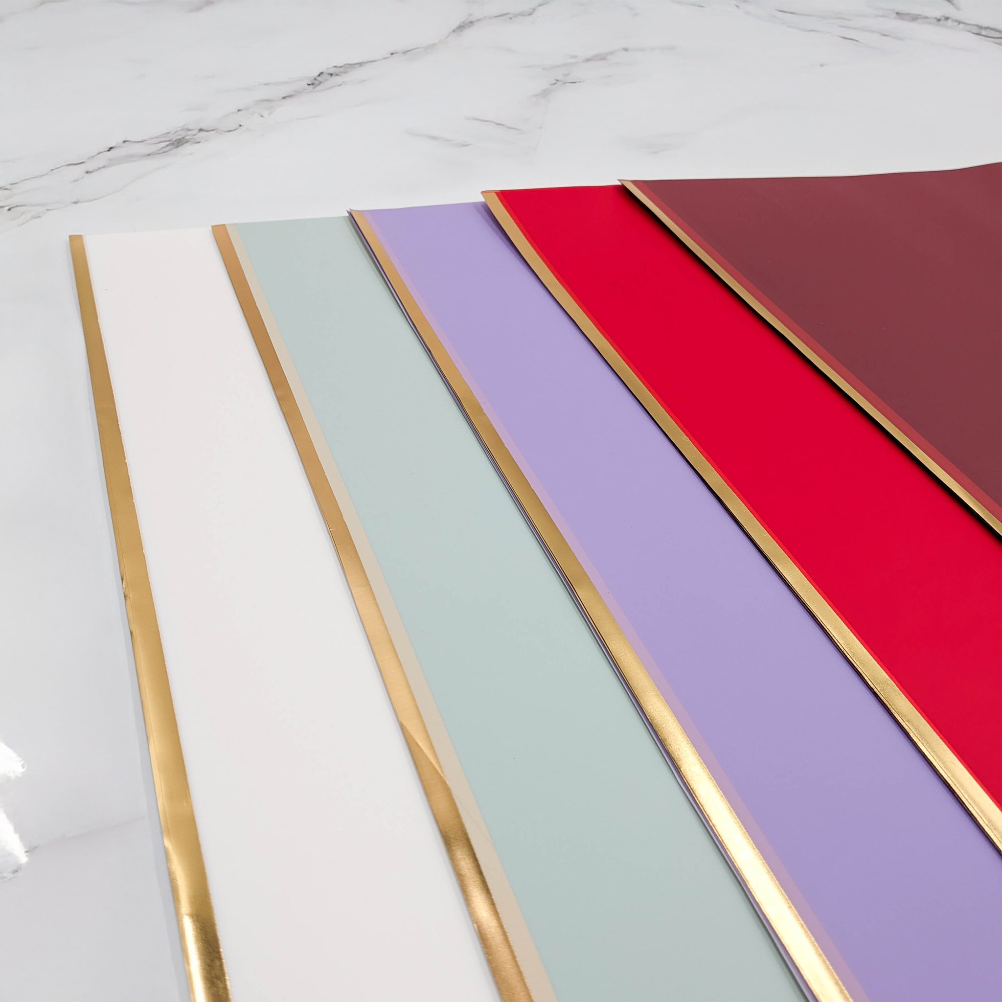 Złoty pasek na obwodzie folii to elegancki akcent, który dodaje jej stylu i kunsztu. Ten subtelny detal podkreśla estetykę bukietu i nadaje mu wyjątkowego wyglądu. Złoty kolor często kojarzony jest z luksusem, elegancją i wysoką jakością, co dodaje wartości estetycznej prezentowanym kwiatom.