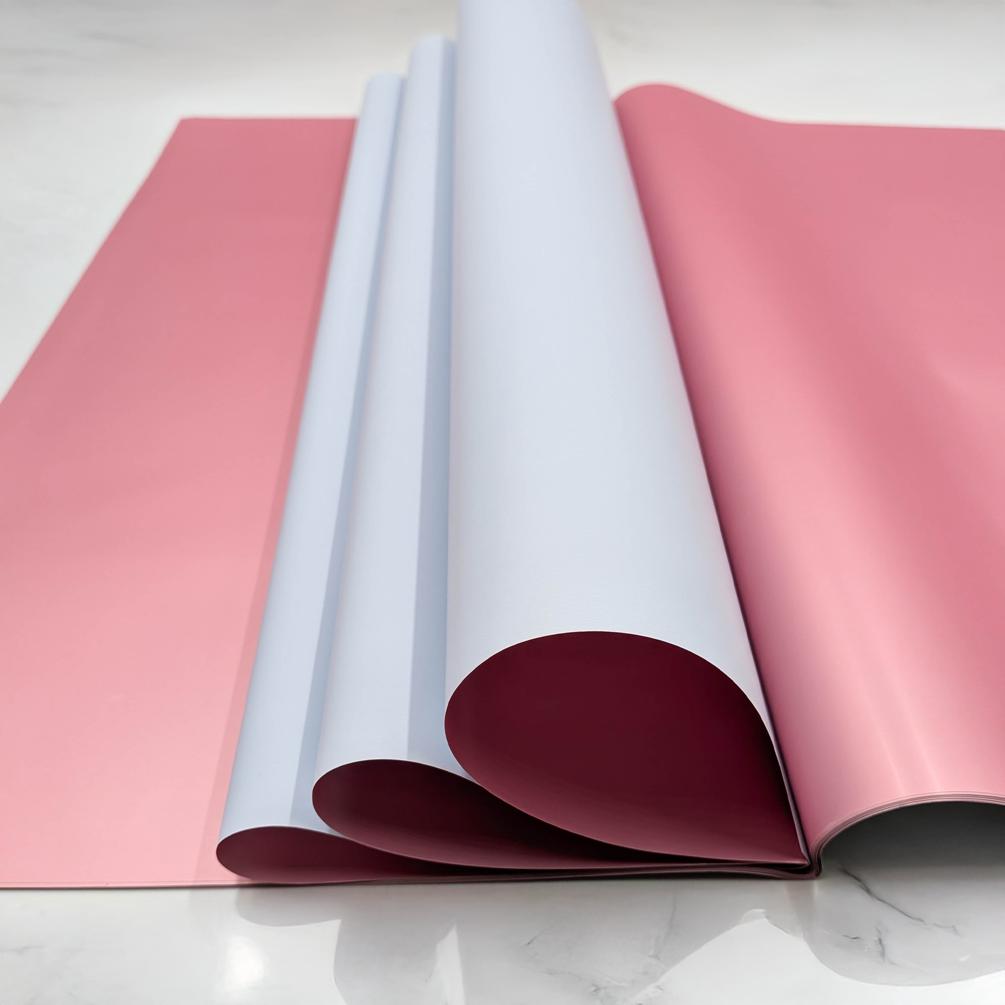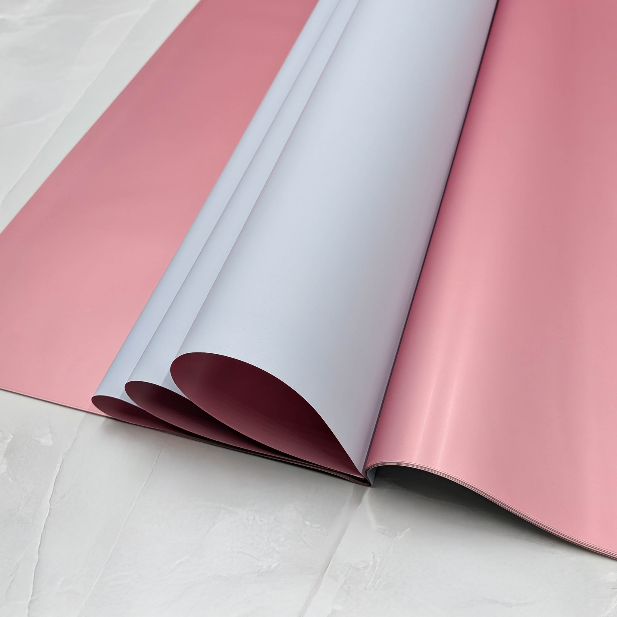 Jednostronne barwienie folii florystycznej na wybrany, jednolity kolor, w połączeniu z drugą stroną w miedziano różowa odcieniu, nadaje jej niepowtarzalny i elegancki wygląd. To dwustronne barwienie sprawia, że folia florystyczna wyróżnia się spośród innych produktów, podkreślając jej ekskluzywny charakter.