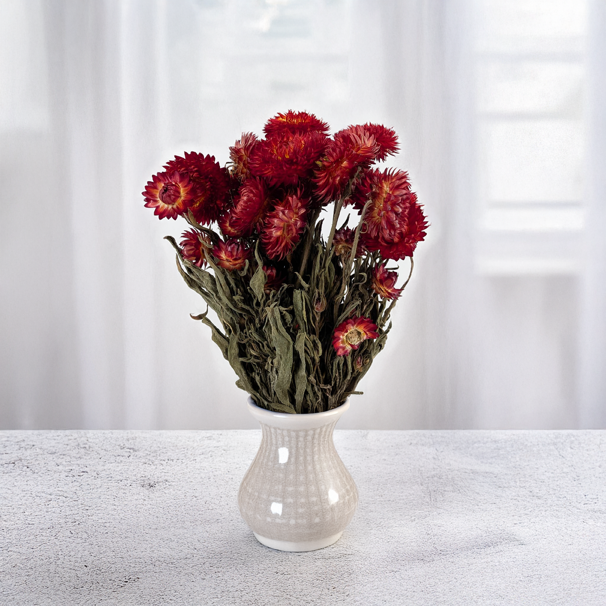Helichrysum Granvia® to nowoczesna odmiana kocanki, która wyróżnia się intensywnym, czerwonym kolorem i wyjątkową trwałością. Dzięki charakterystycznej, sztywnej strukturze i wyrazistej barwie, suszona kocanka idealnie sprawdza się w długowiecznych kompozycjach florystycznych.