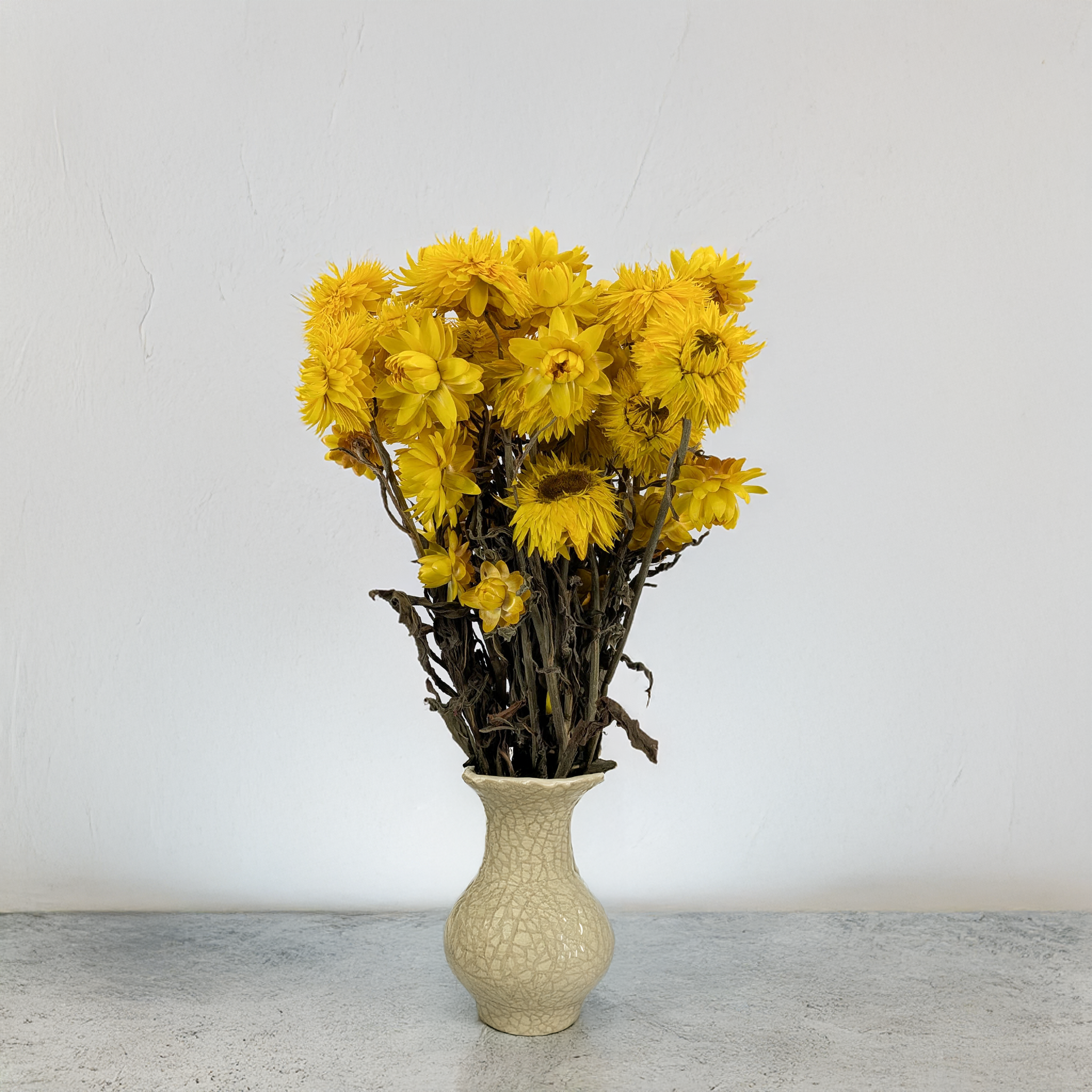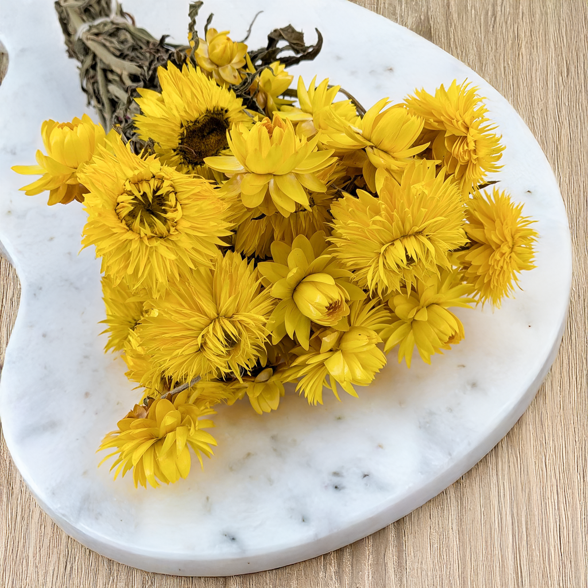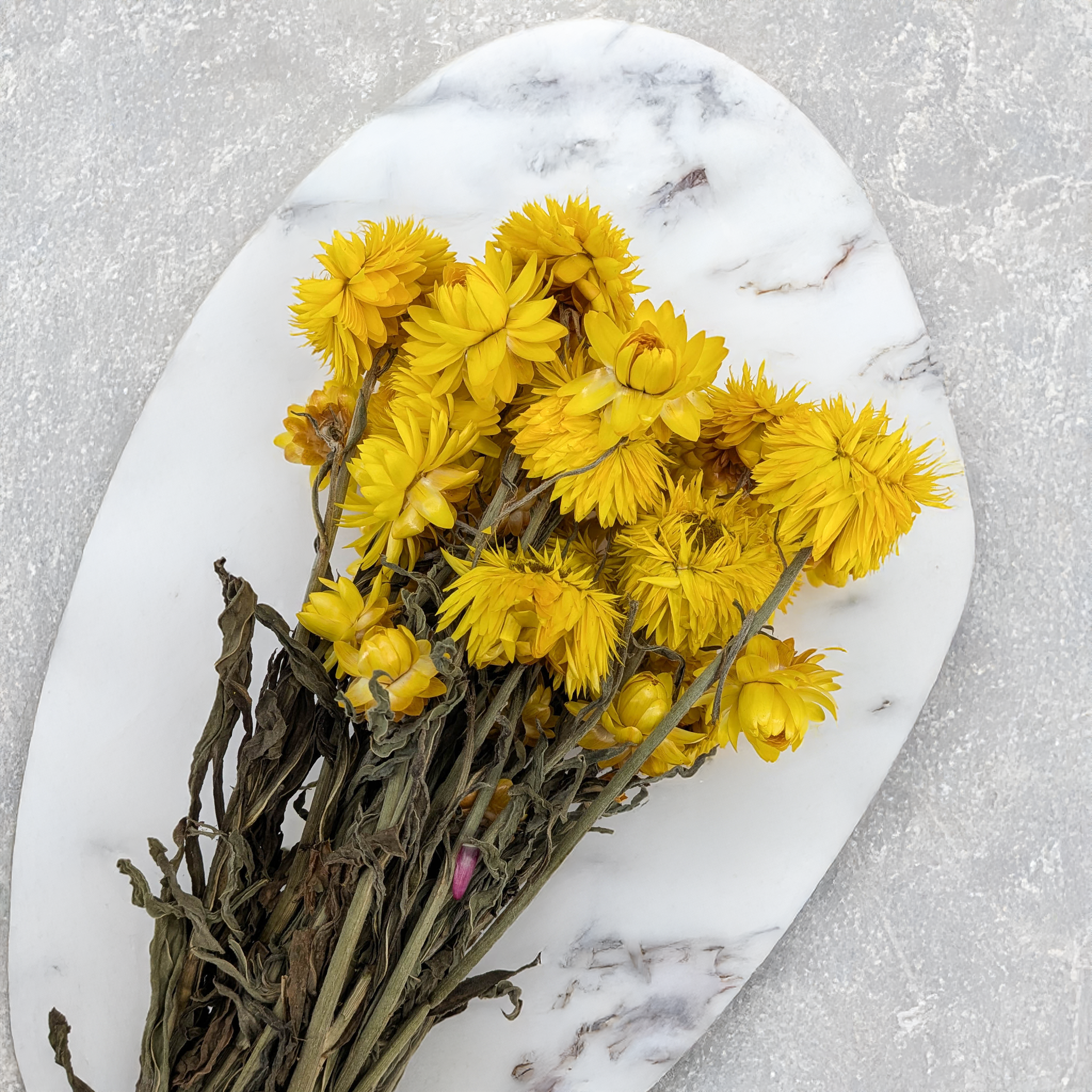 Suszona kocanka Granvia® w odcieniu żółtym to wyjątkowa propozycja dla miłośników trwałych i efektownych dekoracji. Ta nowoczesna odmiana Helichrysum zachwyca intensywną, złocistą barwą oraz strukturą, która pozostaje niezmienna przez długi czas. Kwiaty są suche, sztywne i odporne, dzięki czemu świetnie sprawdzają się w kompozycjach florystycznych na każdą okazję.