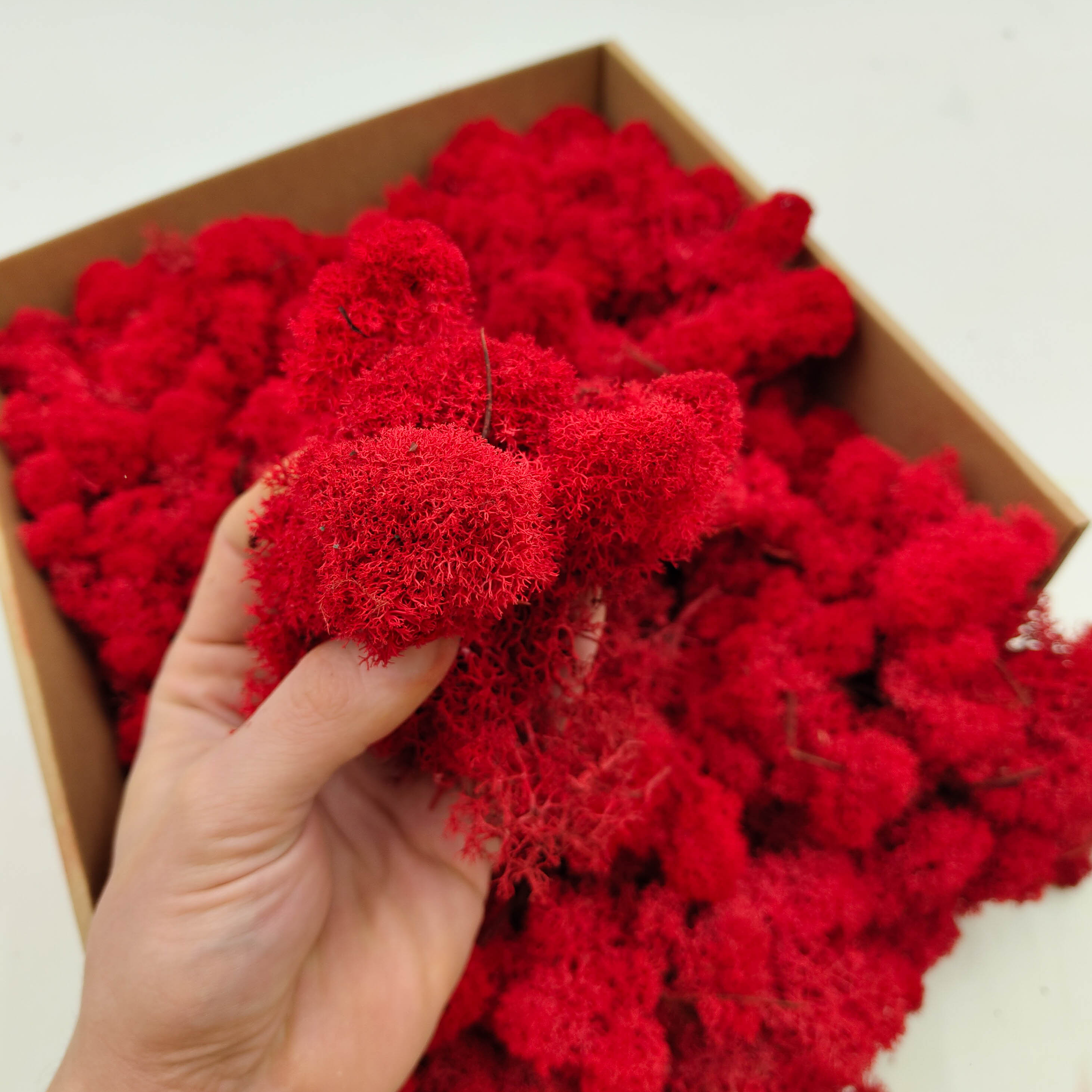 Czerwony Mech Chrobotek Fiński to doskonała propozycja do projektów, które mają przyciągać wzrok i wywoływać emocje. Dzięki intensywnemu, głębokiemu kolorowi oraz dużym, sprężystym główkom, jest to materiał chętnie wybierany do logotypów, ramek czy ozdobnych paneli. Oczyszczony ręcznie, stabilizowany naturalnie – gotowy do kreatywnego użycia bez dodatkowej pielęgnacji.