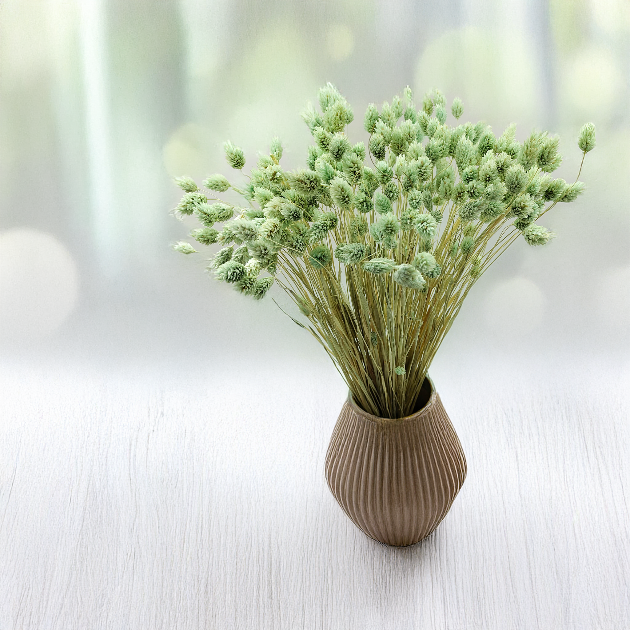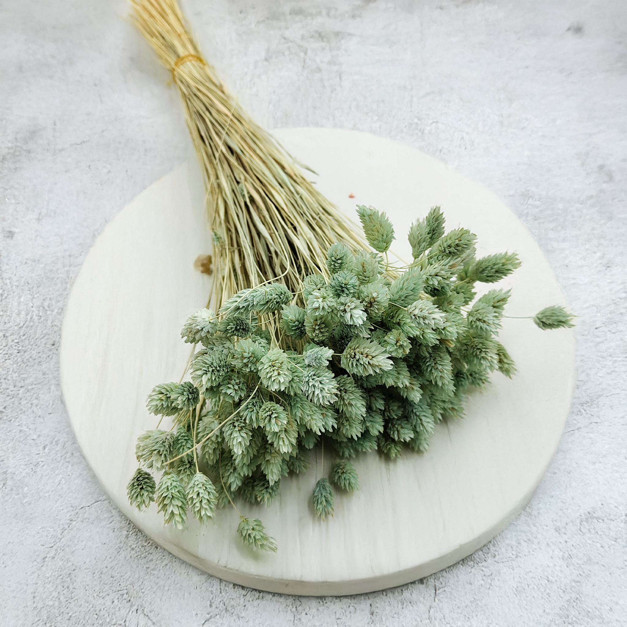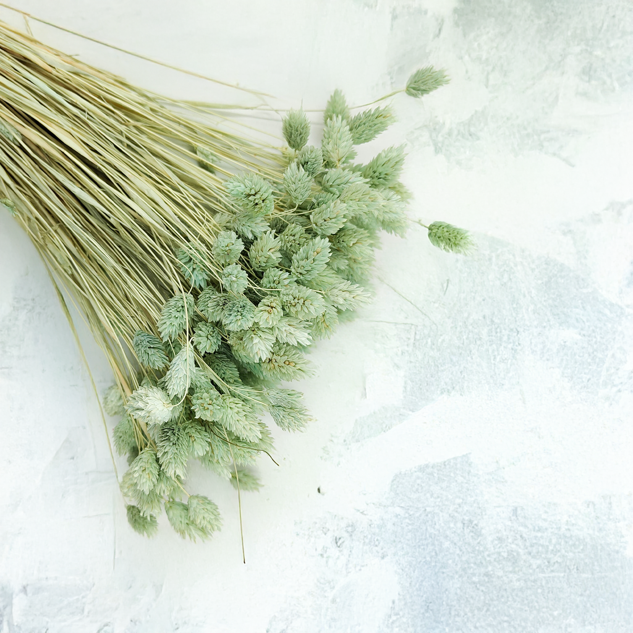 Phalaris Miętowy to wyjątkowo subtelna wersja mozgi kanaryjskiej, barwiona na świeży, pastelowy odcień mięty. Ten kolor symbolizuje spokój, lekkość i czystość – doskonale sprawdzając się w aranżacjach o romantycznym, sielskim i naturalnym charakterze. Dzięki swojej delikatnej barwie, miętowy Phalaris pasuje zarówno do kompozycji ślubnych, jak i nowoczesnych projektów wnętrzarskich.