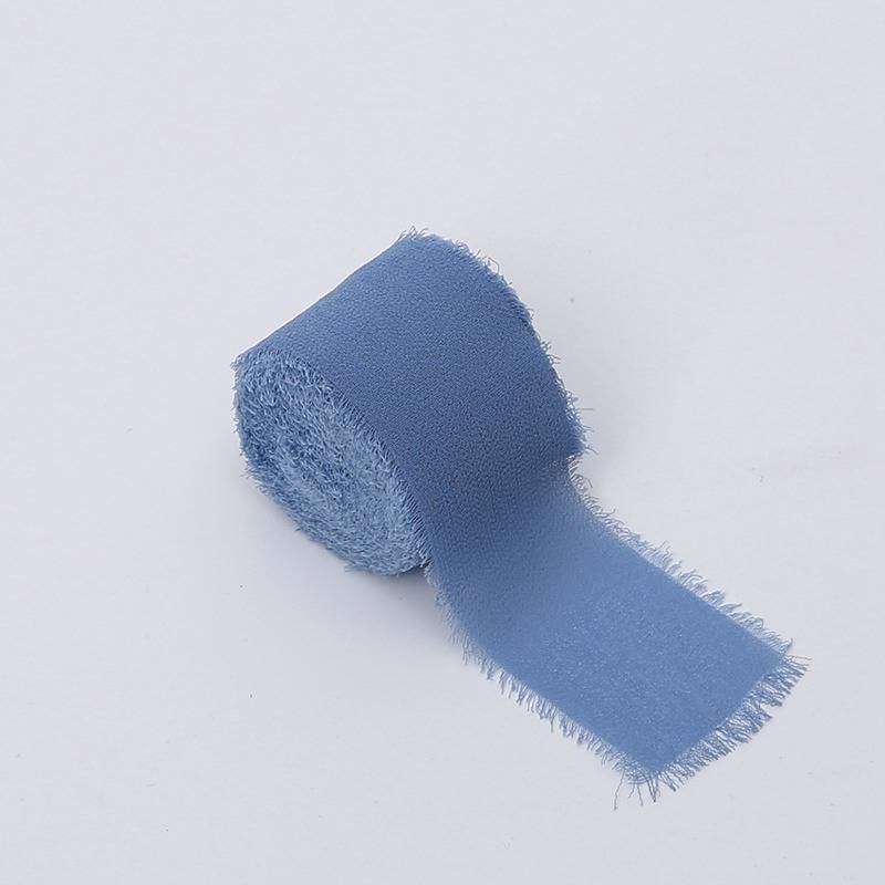 Delikatnie postrzępione brzegi oraz zwiewna faktura szyfonu sprawiają, że wstążka idealnie wpisuje się w stylistykę klasyczną, boho, nowoczesną oraz naturalną. Niebieski kolor doskonale komponuje się z bielą, jasnymi beżami, szarościami, zielenią roślin oraz suszonymi kwiatami.