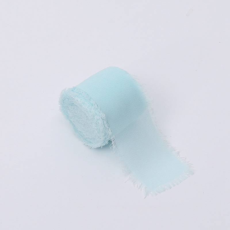 Delikatnie postrzępione brzegi i szyfonowa faktura sprawiają, że wstążka doskonale sprawdza się w stylistyce romantycznej, naturalnej, boho oraz minimalistycznej. Pastelowy błękit harmonijnie łączy się z bielą, kremami, zielenią eukaliptusa, suszonymi roślinami oraz jasnym drewnem.