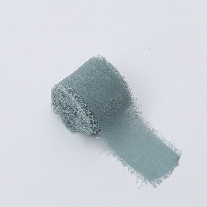 Delikatnie postrzępione brzegi i zwiewna faktura szyfonu sprawiają, że wstążka doskonale wpisuje się w stylistykę boho, naturalną, nowoczesną oraz slow wedding. Zgaszony błękit pięknie komponuje się z bielą, beżami, jasnymi szarościami, zielenią eukaliptusa oraz suszonymi roślinami.